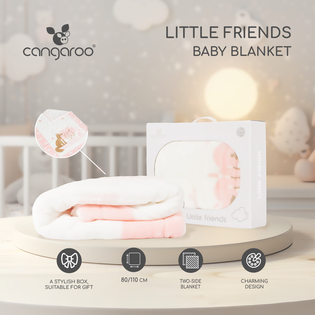 Baba takaró SHERPA 80x110 cm erdei állatos PINK