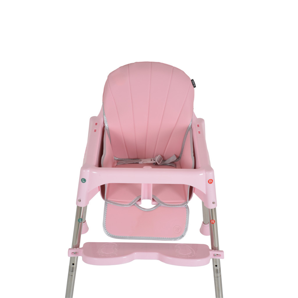 A puha öko bőr kárpit nemcsak kényelmes, hanem könnyen tisztítható is, így a mindennapi használat egyszerű és higiénikus. Az állítható asztallap pohártartóval, valamint a beépített játékok gondoskodnak arról, hogy az étkezések szórakoztató és kellemes élménnyé váljanak.