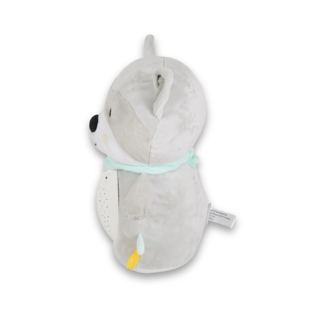 A LAMP éjjeli lámpa és projektor mosómedve formájú plüssfigura, amely biztonságos és megnyugtató társ a kisgyermekek számára. A puha, ölelhető plüssbe épített projektor lágy fényvetítéssel és kellemes hangokkal teremti meg a nyugodt alváshoz szükséges környezetet.