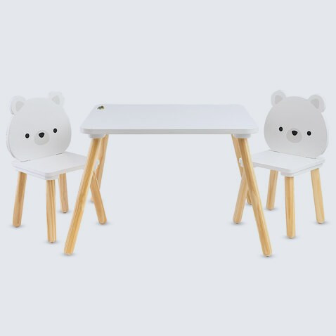 MONI fa kisasztal 2 székkel – Fehér macis minta