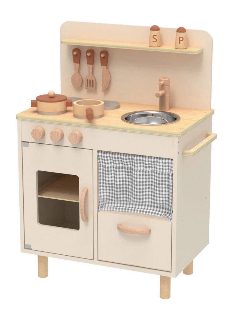 A klasszikus kialakítás és a természetes fa elemek ötvözik a játék és a tanulás örömét, miközben fejlesztik a kreativitást, a kézügyességet és a szerepjáték képességeit.