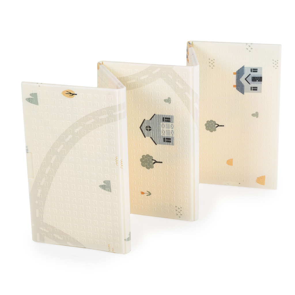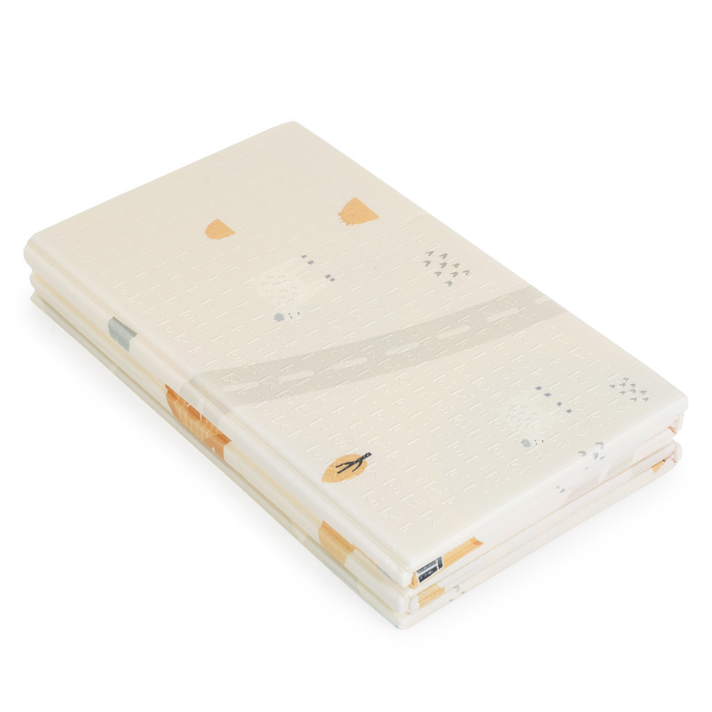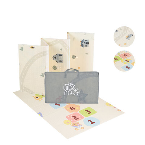 A kétoldalas kialakítás színes, játékos mintákkal – köztük a népszerű ugróiskola grafikával – ösztönzi a mozgást és segíti a gyermek motorikus fejlődését. Praktikus, összecsukható kialakítása révén kis helyen tárolható és bárhová könnyen magával vihető.